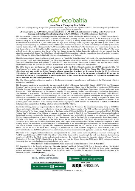 Joint Stock Company Eco Baltia Dom Maklerski Bz Wbk Sa